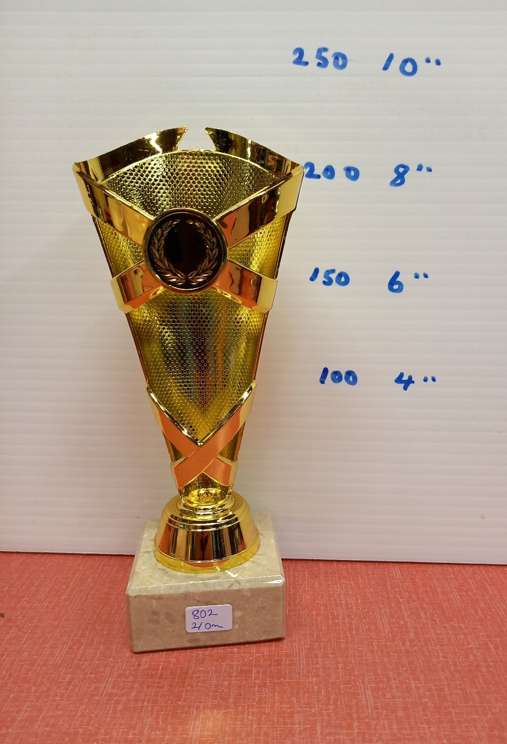 no 802 210mm. 3d gold top on a marble base.