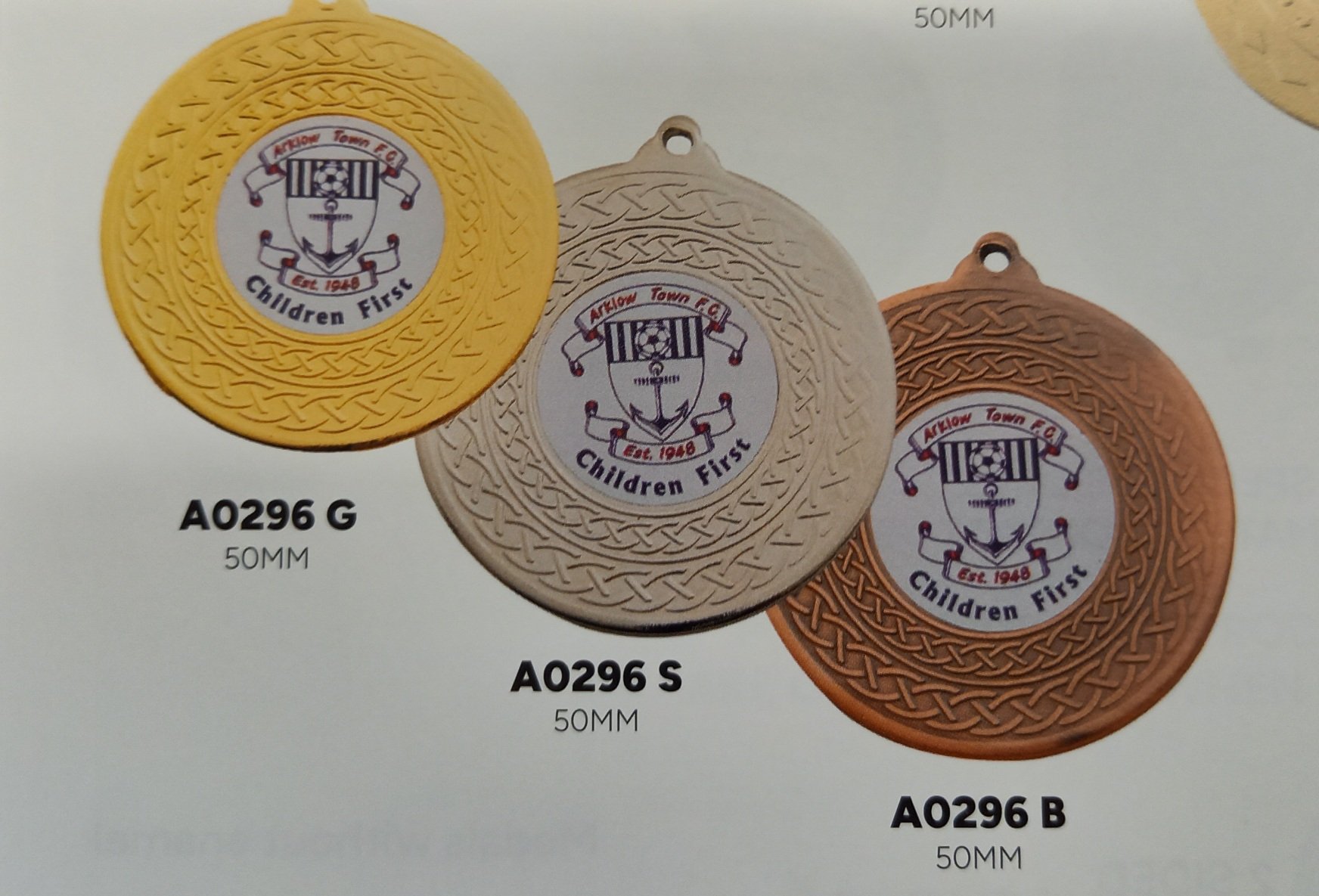 50mm medal available in gold silver or bronze, you can customise the insert or add y9ur club logo